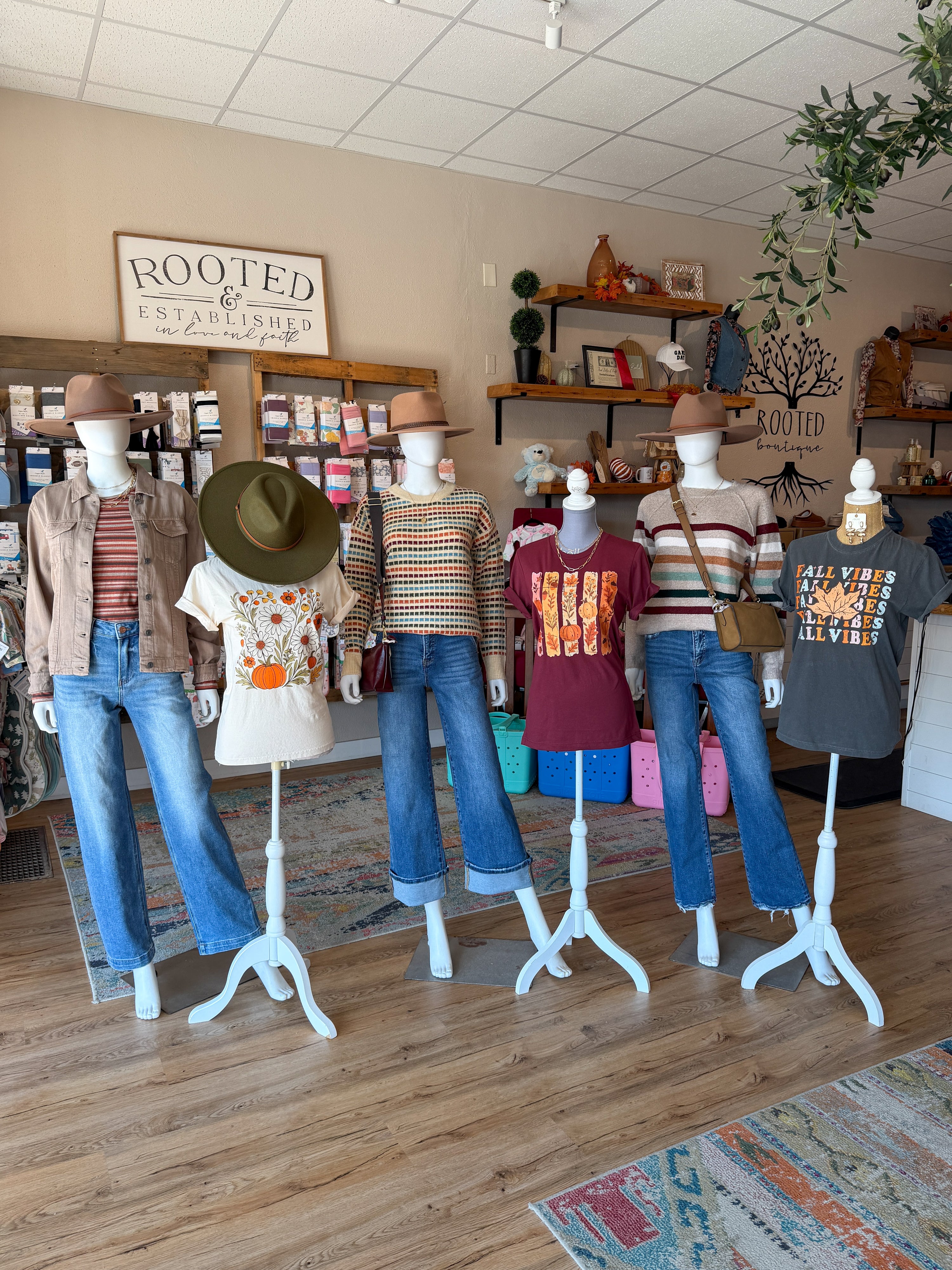 We’re just two small town sister-in-laws who love fashion! We started out of Jackie’s basement about two weeks before the start of the pandemic. There was no turning back. We opened our doors and have been in business in downtown Fulton for five years. We love our small community and our Rooted Family from near and far.