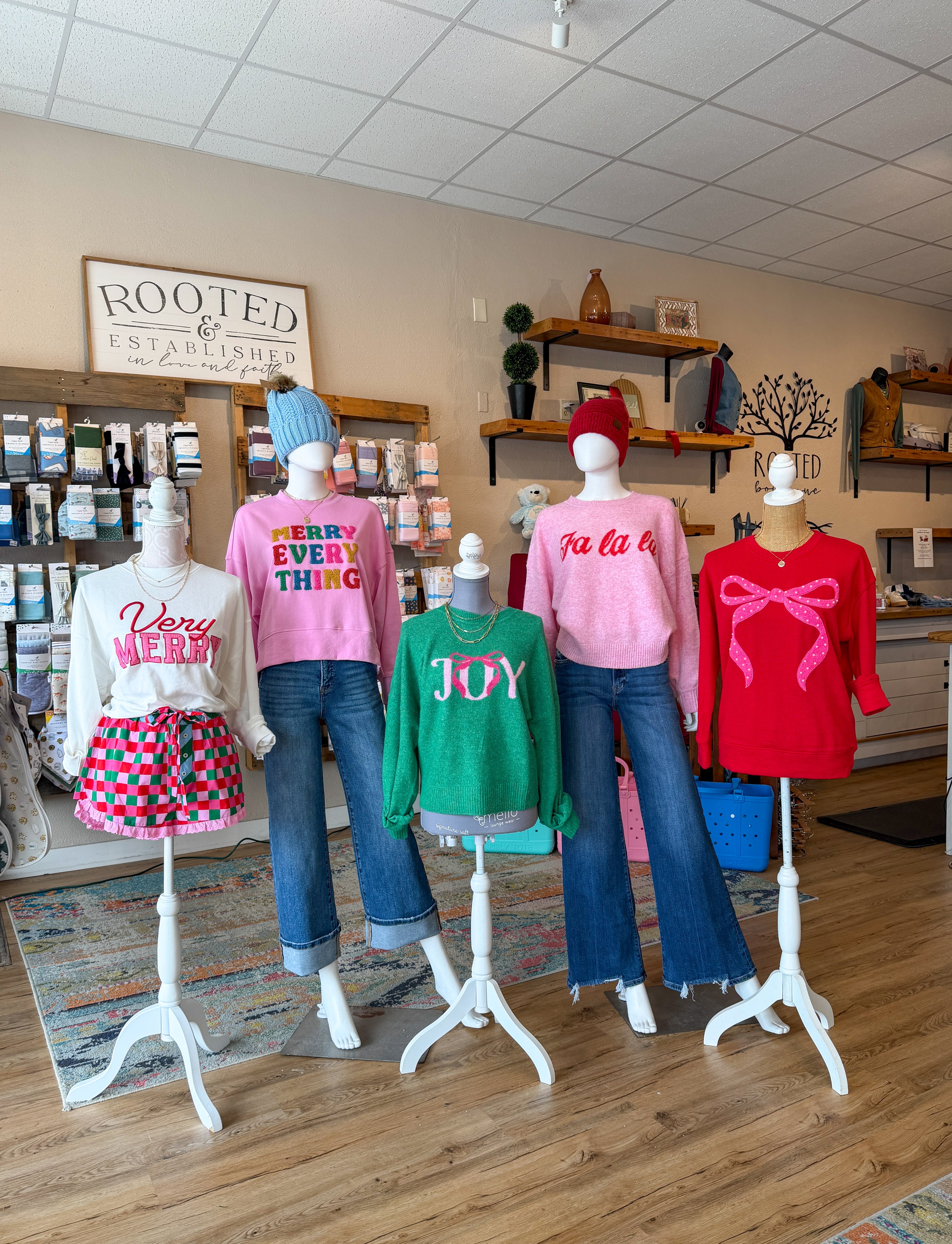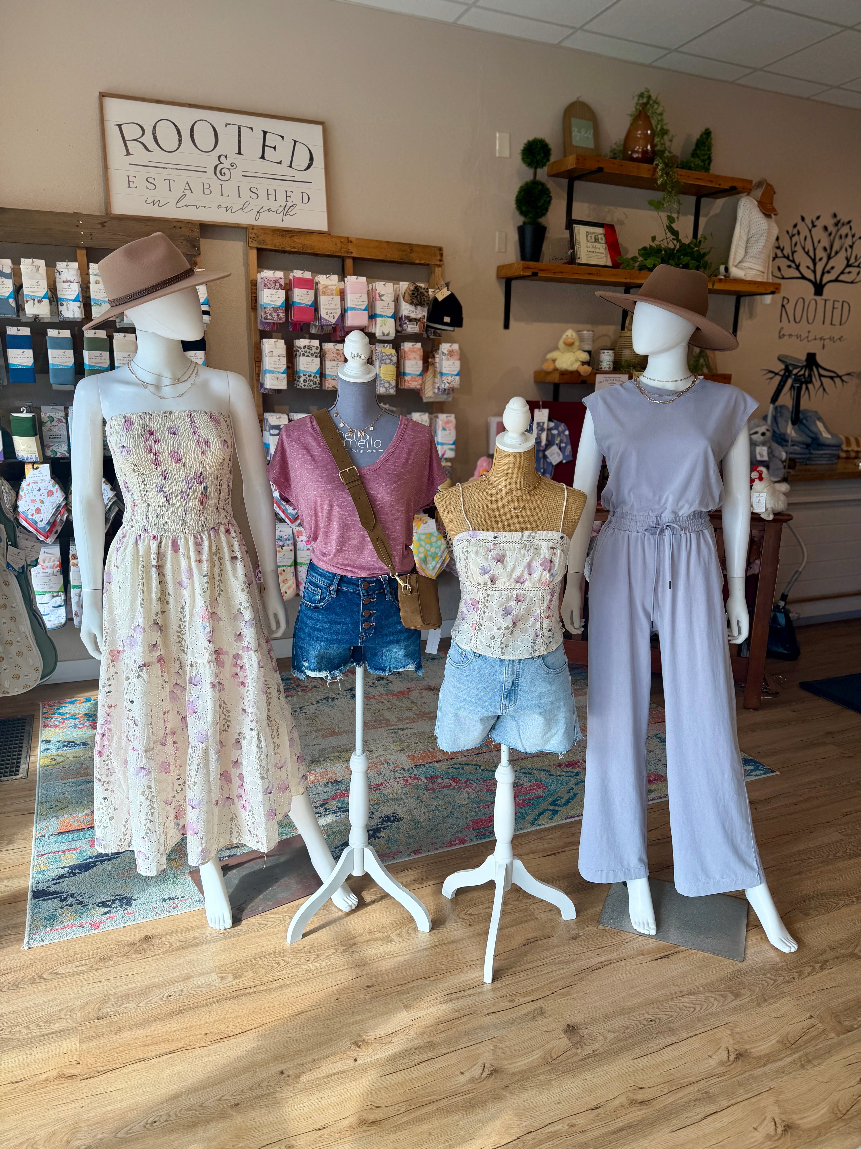 We’re just two small town sister-in-laws who love fashion! We started out of Jackie’s basement about two weeks before the start of the pandemic. There was no turning back. We opened our doors and have been in business in downtown Fulton for five years. We love our small community and our Rooted Family from near and far.